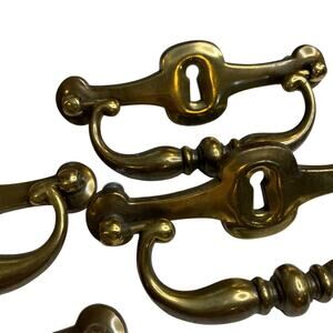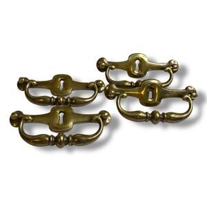 1970s Set of 4 Drawer Pulls 4.25" with 5" Plate Keeler Brass