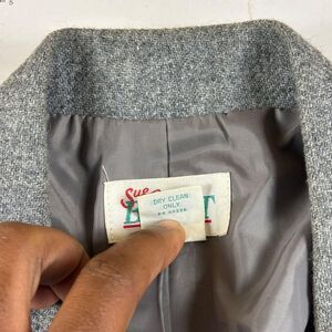 1970s Sue Brett grey blazer jacket, size 22 acrylic/wool double breasted jacket