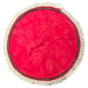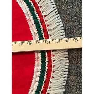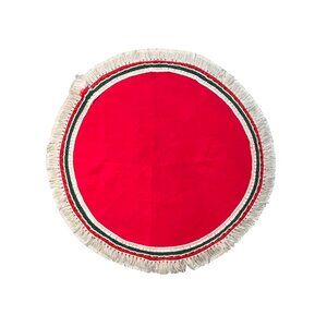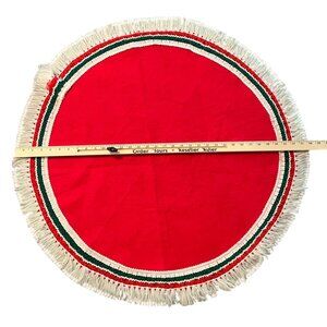 1970s Table Top Christmas Tree Skirt 34" Red Green and White Trim Italian Colors