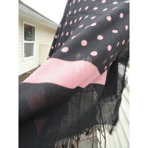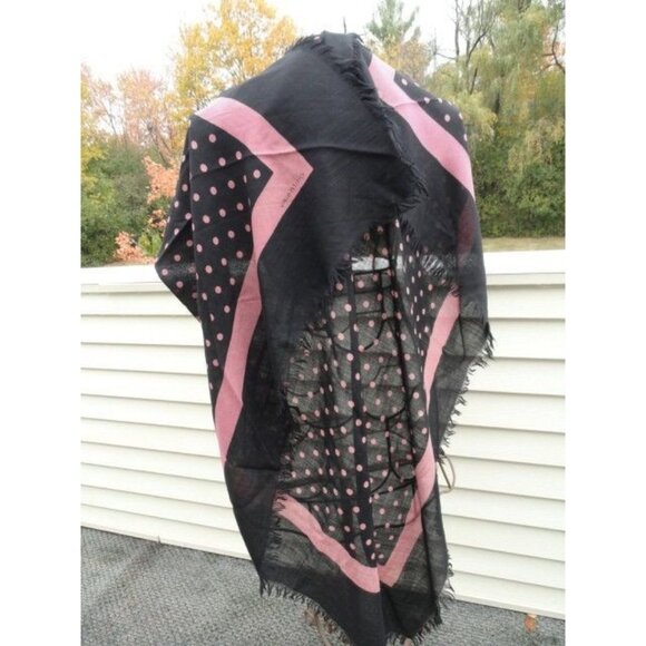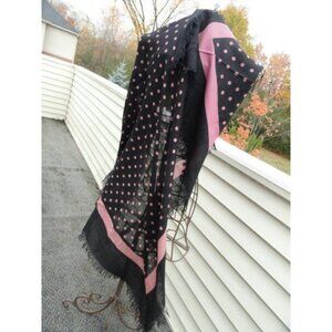 1970s VALENTINO COUTURE Scarf Wrap Cashmere Silk Black Mauve Polka Dots Italy