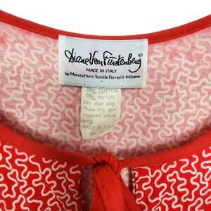 1970's Vintage DVF Diane Von Furstenberg Graphic T-shirt Dress. Made in Italy. 50% Cotton. 50% Rayon. Keyhole tie-neck dress. 50% cotton. 50% rayon. Please read entire description. Collectable.