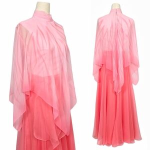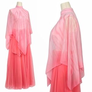 1970s Formal Dress. This 2 tone pink 70s vintage maxi features a sheer zebra print overlay on a light pink sleeveless bodice that cinches at the waist then leads into a super full and flowy chiffon maxi skirt. It has a matching sash. Zips up the back. Straight from the original owner. By Kay Kipps. Fits an XS 32-33" Bust, 26" Waist.