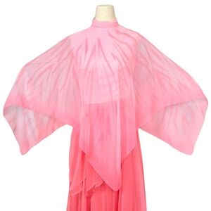 1970s Vintage Formal Dress 70s Pink Maxi Chiffon Flutter Sleeves Zebra Stripe XS