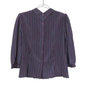Circa 1970s Vintage Blouse. Jonathan Martin Purple, Pink, & Blue Multi-color Striped Blouse. Long Sleeve, Gathered Waist, Fitted Blouse with Peter Pan Collar & Button Down Back. Super Cute Retro Twee Blouse