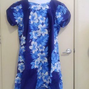 1970s Vintage Kalena Fashions of Hawaii Floral Muumuu. Polychrome Blue Size 4XL. This is a lovely full length muumuu. Perfect for wearing around the house or on vacation. Transitional piece that is a wardrobe essential. Short sleeves that are open for extra room. Bottom hem is pleated to make it ruffle. The hibiscus floral pattern is vertically placed all the way around. Made in Hawaii. 65% polyester 35% cotton. Machine Wash, Tumble dry. This has been professionally cleaned and starched. Stored for many years. Never worn. Excellent Vintage Condition. No rips, tears, or stains.