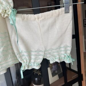 1970s Vintage Knit Set baby girl rosettes bow ribbon bloomers top Mint Venezuela