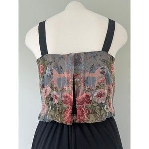 features: flattering blouson bust with Victorian material, waist tie, halter straps, back zipper & clasp closure, side slit, elastic waist