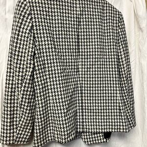 This sophisticated blazer from Pendleton features a classic black and white houndstooth pattern, offering a timeless and elegant look. Crafted with a structured design, it is perfect for adding a touch of refinement to any outfit. Ideal for both formal and casual occasions, this blazer is a versatile addition to your wardrobe.
