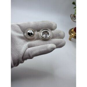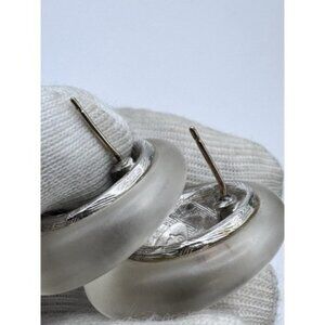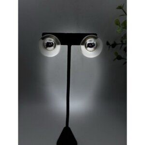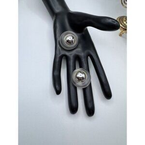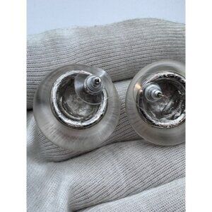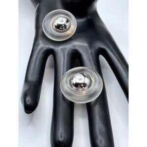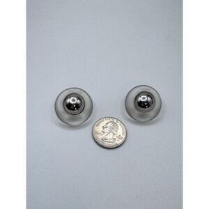 Gorgeous vintage earrings from Pierre Cardin. The earrings feature a round clear shape lucite with a cabochon silver tone in the center and 14 k back post butterfly closure and are signed. The earrings are made of high-quality lucite material that adds a unique touch to their design.