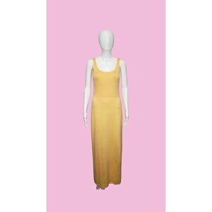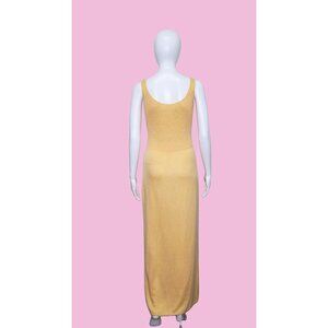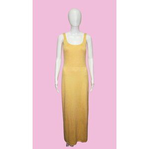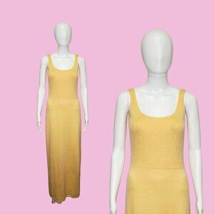 1970s St. Johns Knits orange knit maxi dress with slit.