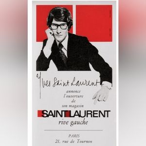 From Yves Saint Laurent's 'Rive Gauche' collection launched in 1966 and spearheading ready-to-wear, luxury fashion as the sanctum of Paris youth culture at the time. A boutique in New York opened in 1968 and in London in 1969 after overwhelming success. Many of Saint Laurent's most famous collections began in Rive Gauche, and it is where he developed his philosophy of "wardrobe essentials", or staples. This approach to dressing became the core of the brand and became synonymous with the modernity of the 1970s fashion world.