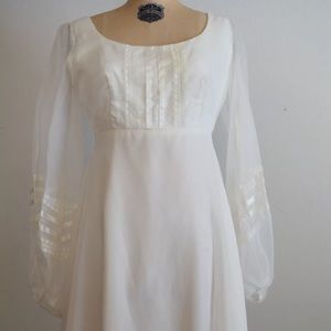 Acetate and chiffon bone white dress by Lorrie Deb. Long flowy sleeves. Lovely enough to wear as a wedding dress or Princess bride cosplay. Back zipper. No stretch. Freshly dry cleaned.
