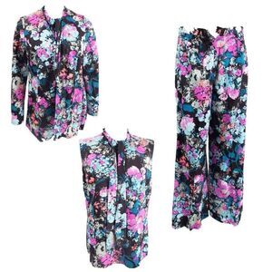 1970s Vintage Julie Miller 3 Piece Pant Set Floral