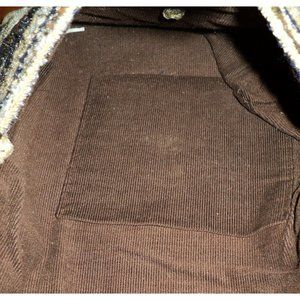 Vintage 1970s woven fabric shoulder bag with flap & button close