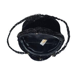 1970s Walborg Small Black Evening Bag Purse with Glass Beads & Kiss Lock Clasp