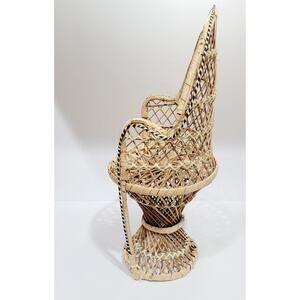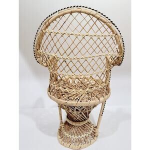 1970's Wicker Peacock Fan Back Rattan Doll Chair 16" Plant Stand Moroccan Hippie