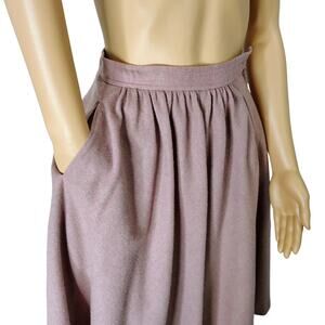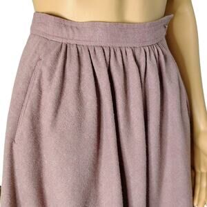 1970s Wool Liz Claiborne Mauve Full Circle Skirt Side Pockets. Banded and buttoned waistband. Hidden left side zipper. Two hidden pockets at each side of the hips. Gathered at the waist. Metal mauve Talon zipper. Lined.