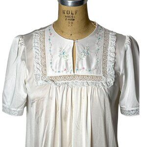 1970s nightgown with embroidered flower bodice by Shadowline Size S