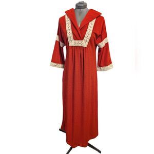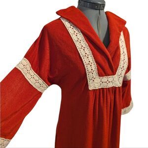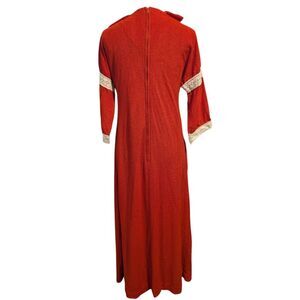 1970s rust orange maxi dress, goddess dress butterfly wings Terry cloth Crochet