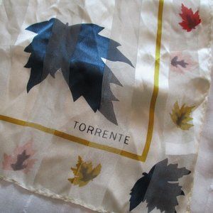Vibrant maple leaves float on this vintage Torrente silk scarf