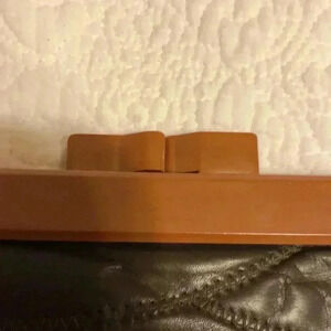1970s vintage brown leather patchwork clutch. Made in Hong Kong.