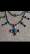 This fun squash blossom style necklace is strictly faux -- with plastic cabochons, set in silver-tone metal on a ball chain. Pretty, pressed geometric design on the elements.