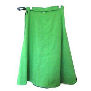 bow belt a-line long below knee bright denim jeans jean neon full high waist waisted 1970s vintage reversible denim lime green midi wrap skirt size small medium 16 acid green brat