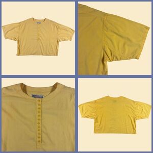 1970s yellow cotton blouse by Fixation Ari, size 24/44 vintage top/shirt