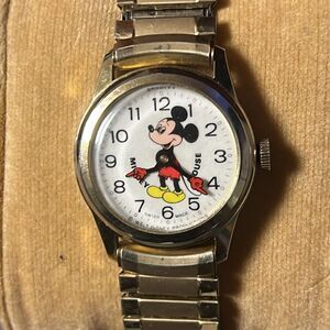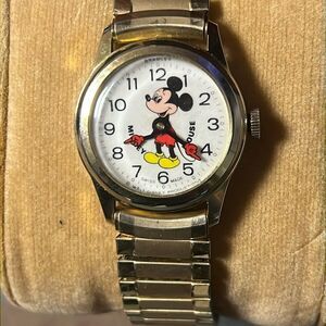 1970s Bradley Gold Mickey Mouse Red Hands Swiss Made Mechanical Wind Up Men’s Watch