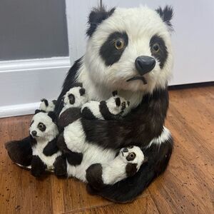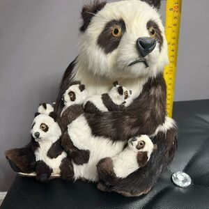 1970s Vintage real fur Mother Panda With 5 Cubs RARE
