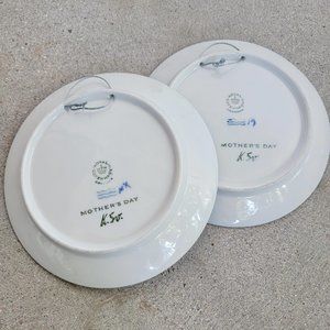 Stunning decorative plates from Copenhagen Demark. Blue and white illustrations of mothers with children say "Mors Dag" which translates to "Mother's Day" This set is already wired for hanging. They are ready to come out of the box and onto the wall.