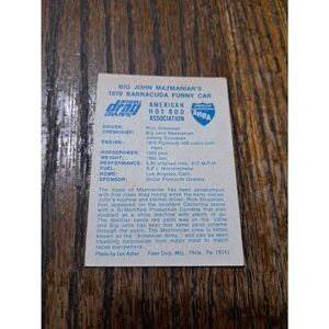 Good Vintage Condition 1971 Big John Mazmanian 1970 Plymouth Barracuda Funny Car Fleer Official Drag Champs AHRA American Hot Rod Association Trading Card