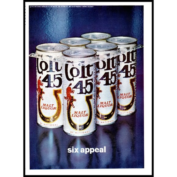 1971 Colt 45 Malt Liquor 6 Pack Beer Vintage Print Ad Horseshoe Man Cave Bar Art
