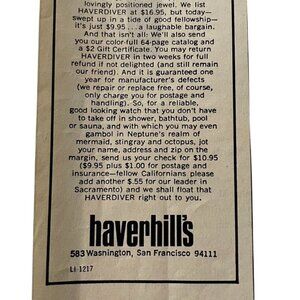 Original vintage 1971 Haverhills print ad featuring a Swiss watch. Perfect for collectors and enthusiasts of vintage advertising. This partial page ad provides a glimpse into classic watch marketing from the early '70s.