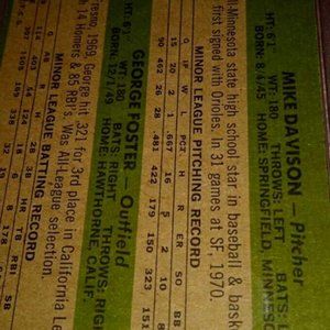 This 1971 Topps baseball card features New York Giants rookies Mike Davison and George Foster, numbered #276. The card is an original and has been graded as Excellent with a 5 rating by Professional Sports (PSA). The card attributes include being a rookie card and belonging to the Major League (MLB) league. This item is a great addition to any sports trading card collection and is sure to be a valued possession for any baseball fan.