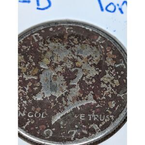 This 1971-D Kennedy Half Dollar features dramatic red earth tone toning across its surfaces, likely caused by long-term environmental exposure. The coin retains its iconic design: President John F. Kennedy’s profile on the obverse and the Presidential Seal on the reverse. While circulated, the coin’s coloration adds depth and character, making it a standout for collectors of toned coins or vintage U.S. currency.