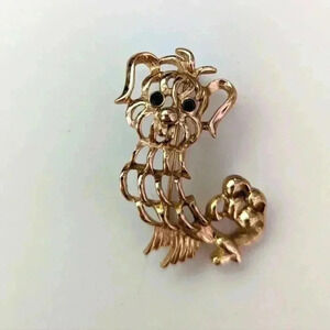 Vintage Avon 1972 Pekinese Puppy Openwork Dog Rhinestone Eyes Pin Brooch