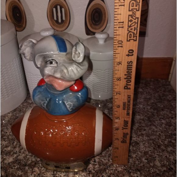 1972 Elephant /Football Jim beam whiskey decanter (bottle)