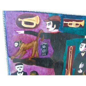 Vintage 1972 Ken Nielsen Painting Oil On Wood “MUSICAL CAPERS” Mexico Provenance