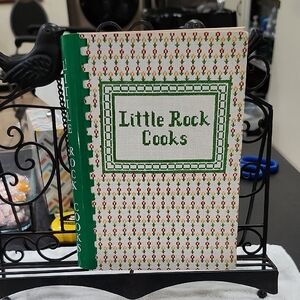 Charming cookbook titled 'Little Rock Cooks' with a floral cover from Arkansas. Features a green spine and intricate design. 353 pages. Great condition