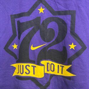Men's Nike Regular Fit XL Purple T-Shirt. 1972 Lakers Commemorative. Listed size: XL. Approximate hand measurements — chest: 46", length: 29", sleeve length: 19". Gently worn with minimal signs of previous use.