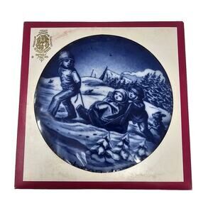 Vtg 1973 BAREUTHER Christmas Plate Children sledding Bavaria Germany