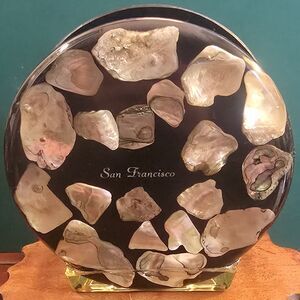 1974 Lucite Acrylic Abalone Seashell Napkin Letter Holder San Francisco Souvenir