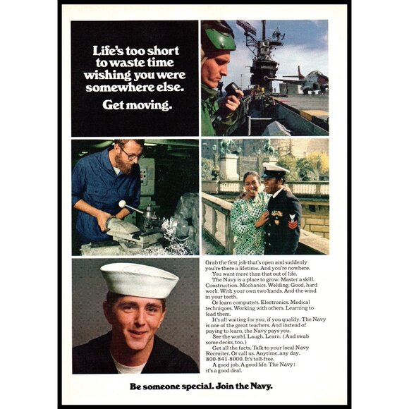 1974 US Navy Recruiter Recruiting Vintage Print Ad Aircraft Carrier Wall Art