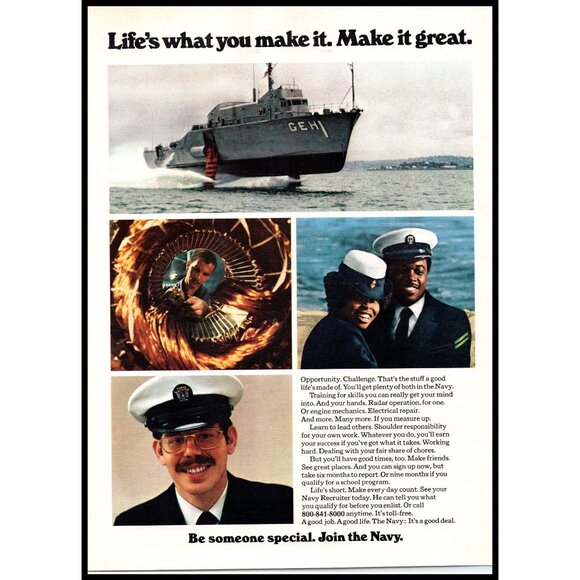 1974 US Navy Recruiting Recruiter Vintage Print Ad Hydrofoil Engineer Wall Art