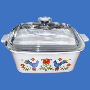 1975 7 PC Vintage Corning Ware Country Festival 1 Casserole Dish & 3 Sauce Pans