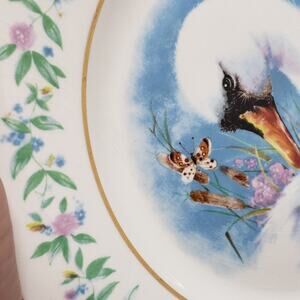 1975 Avon Gently Moments Goose + Gosling Gold-Trimmed Christmas Plate