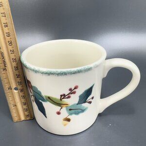 1975 Hartstone Coffee Mug Cup with Fall Holly Leaves Made in the USA Pottery VTG
