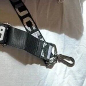 Each strap is seperate from one another. Each strap has one plastic hook. There is nothing other than the silver wording. Both straps are identical in length, size, but the wording is different from one another.