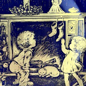 Limited-edition 1975 “Christmas Cheer” collector plate by Lindner Kueps Bavaria for the H.H. Lihs Collection, featuring genuine cobalt porcelain richly decorated with 24K gold artwork of children by the fireplace and Christmas tree. Made in West Germany and individually numbered, this 7.5 inch display plate is perfect for holiday decorating, vintage Christmas collections, or gifting to plate collectors who love high-quality Bavarian porcelain.